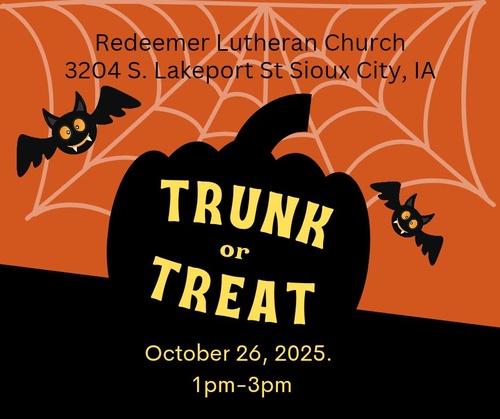 Join us for our annual Trunk or Treat. Bring the whole family to Redeemer's parking lot (Gym door 6 for Inclement weather). We will have lots of cars handing out treats, Free Hotdogs, Hot Chocolate, Smore's and hayrack rides. 1-3pm October 26th